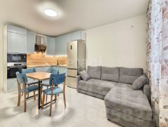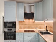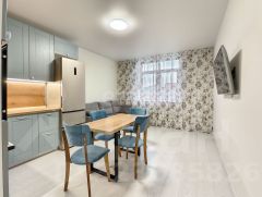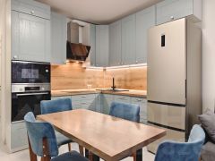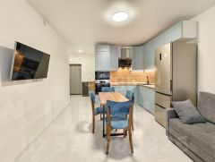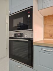 Квартира продается оснащенной мебелью и техникой, многое из того, что вы видите на фото остается после продажи: красивый кухонный гарнитур небанального бирюзово-голубого цвета со встроенной достойной бытовой техникой: варочная панель, духовой шкаф, вытяжка, посудомоечная машина; обеденная группа (стол и 4 стула), так гарморнирующая с кухонным гарнитуром, диван в зоне гостиной, комод и шкаф в прихожей, гардеробная система, все осветительные приборы и оконный текстиль.