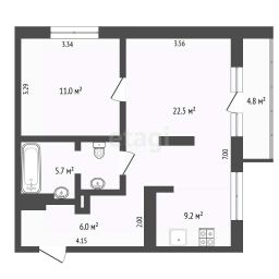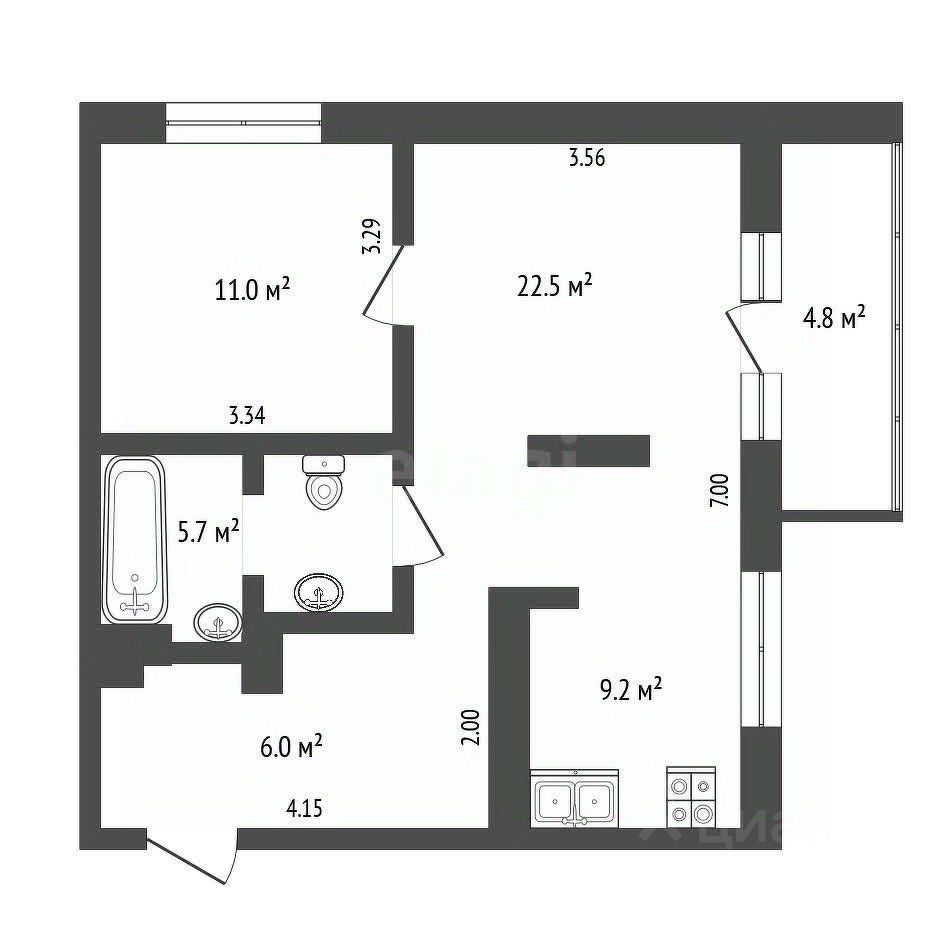 Евро-двушка - отдельная спальная комната + кухня-гостиная (кухня отделена не сплошной перегородкой)