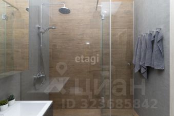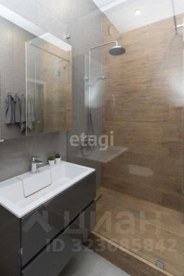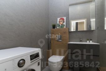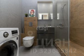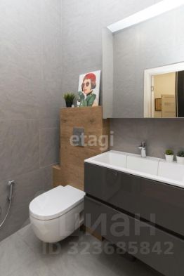 Сан. узел в дорогом кафеле соответствует общему дизайну квартиры. Большинство мебели для сохранения целостности и функциональности пространства сделана по индивидуальному заказу и идеально вписывается в размеры квартиры.
