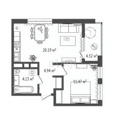 К продаже представлена шикарная квартира формата 1+ площадью 45,6 м2. Квартира находится в секции средней этажности, в которой всего 7 этажей. Современная планировка евро формата: просторная и светлая кухня-гостиная площадью 20 м2 с выходом на лоджию с панорамным остеклением, спальня площадью 11,5 м2 с нишей под шкаф, совмещенный санузел и прихожая. Обратите внимание на потолки, высота которых составляет 3 метра, а также на вид из окон, которые выходят на лес! Квартира готова для ремонта: выполнена ровная стяжка пола, стены выровнены под маяк, сделана разводка электричества, установлены розетки и выключатели. Двор закрыт от машин, уже работают магазины. Звоните, покажем в удобное для Вас время.