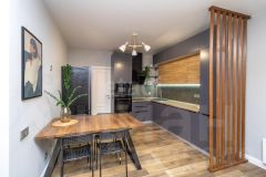 СОСТОЯНИЕ: Изысканный ремонт выполнен по индивидуальному дизайн-проекту. Благодаря высокому этажу, квартира залита солнечным светом, создавая атмосферу тепла и уюта. Сердце квартиры — просторная кухня-гостиная площадью 35 м² со своей кладовой - мечта любой хозяйки. Две уютные спальни и отдельная вместительная гардеробная.