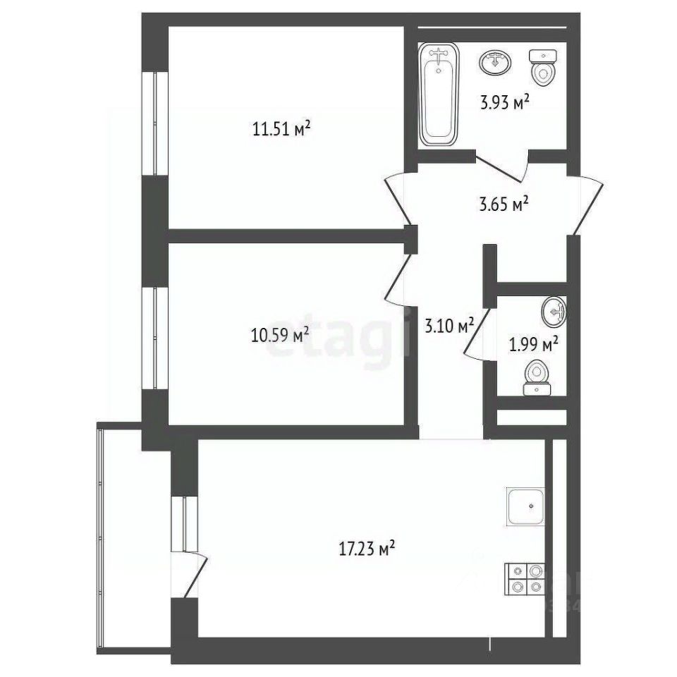 В квартире функциональная планировка: 2 изолированные спальни, кухня-гостиная с выходом на балкон, 2 просторных сан.узла (возможно один из них оборудовать под гардеробную комнату или постирочную). В коридоре есть ниша для зоны хранения.