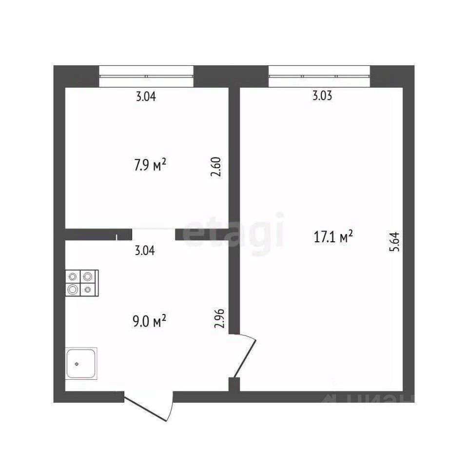 Объект обладает рациональной двухкомнатной планировкой с изолированной кухней, что обеспечивает комфортное проживание.