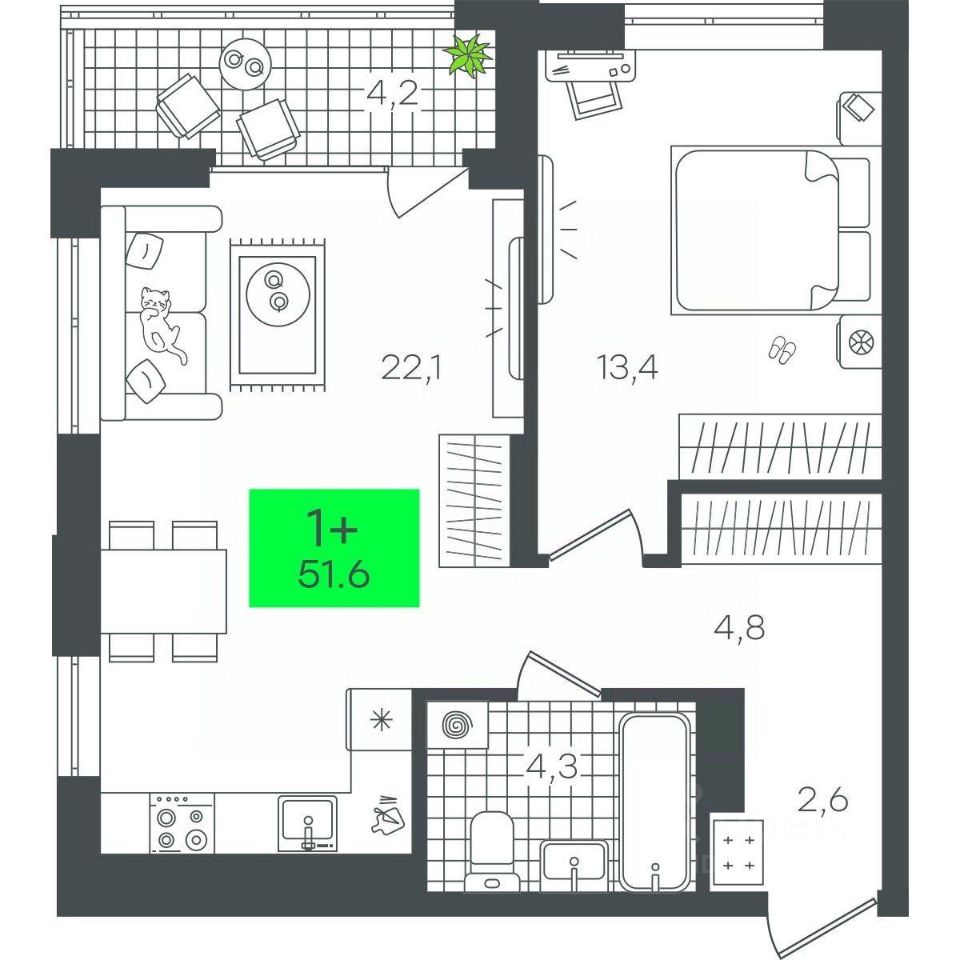 Продаётся 1-комнатная квартира в строящемся доме (1-Д3.2 (Глебова, 10)), срок сдачи: III-кв. 2026, общей площадью 51.62 кв.м., на 9 этаже. Компания 4D приступила к строительству нового жилого комплекса "Гранд квартал". Новый ЖК находится в зеленой зоне Калининского района, южнее микрорайона Тюменская слобода.
