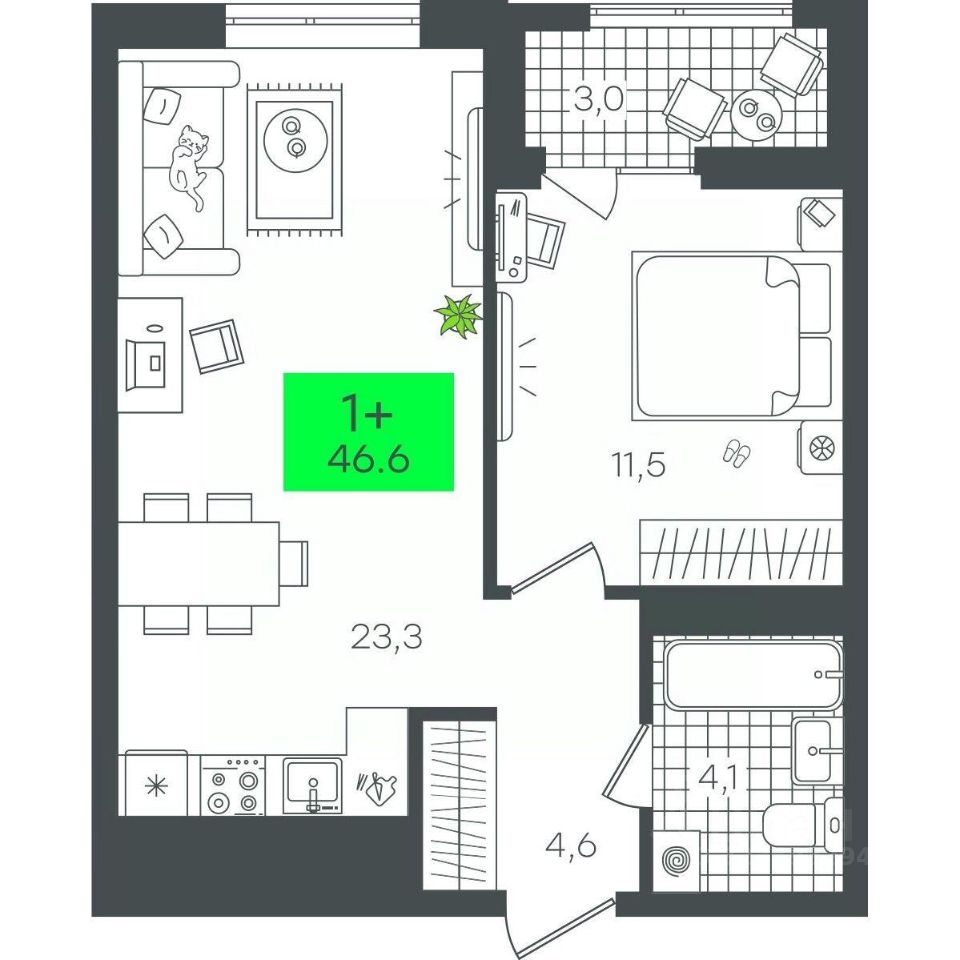 Продаётся 1-комнатная квартира в строящемся доме (1-Д3.2 (Глебова, 10)), срок сдачи: III-кв. 2026, общей площадью 46.69 кв.м., на 14 этаже. Компания 4D приступила к строительству нового жилого комплекса "Гранд квартал". Новый ЖК находится в зеленой зоне Калининского района, южнее микрорайона Тюменская слобода.