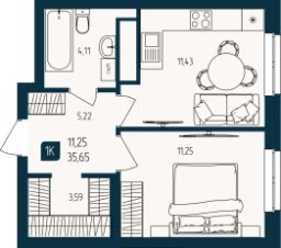 Продаётся 1-комнатная квартира в строящемся доме (Дом Каскад (ГП-2)), срок сдачи: III-кв. 2027, общей площадью 35.65 кв.м., на 19 этаже. Новый жилой комплекс "Квартал Мятный" от Специализированного застройщика "Юпитер" расположен по адресу: г. Тюмень по ул. Кулибина.
