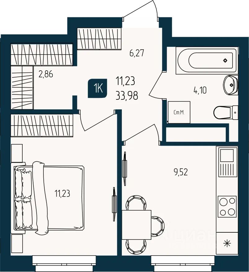 Продаётся 1-комнатная квартира в строящемся доме (Дом Каскад (ГП-2)), срок сдачи: III-кв. 2027, общей площадью 33.98 кв.м., на 16 этаже. Новый жилой комплекс "Квартал Мятный" от Специализированного застройщика "Юпитер" расположен по адресу: г. Тюмень по ул. Кулибина.