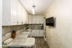 В квартире выполнен современный ремонт в светлых тонах из качественных материалов-декоративная штукатурка на стенах, санузел совмещенный в кафеле, установлена инсталяция. Балкон остеклен и облагорожен.