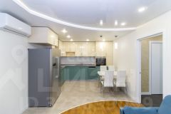 Современный ремонт выполнен в нейтральных тонах. Очень продуманная планировка квартиры: большая кухня-гостинная, родительская спальня, две детские спальни, два санузла, два балкона, просторный холл. Комнаты правильной квадратной формы, что позволяет прекрасно зонировать пространство, расставлять мебель и остается достаточно свободного места.