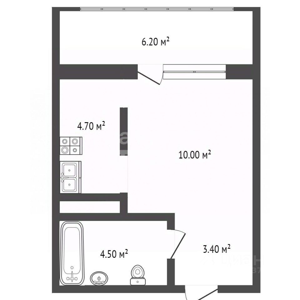 * Студия с совмещенным санузлом