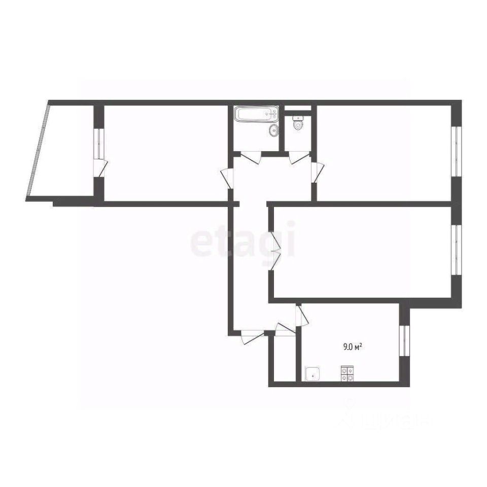 Планировка рациональна и продумана: изолированные комнаты позволяют комфортно разместить семью с детьми. Спальня и детская обеспечивают уединенность, а гостиная, объединенная с кухней, становится центром семейной жизни. Все жилые комнаты ориентированы в тихий двор, гарантируя спокойную атмосферу без уличного шума. Ключевым преимуществом является большой балкон, который можно функционально преобразить в дополнительную зону отдыха или летнюю террасу, разместив там мебель.