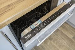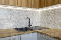 - Кухня оснащена стильным кухонным гарнитуром со всей необходимой встроенной техникой, включая фильтр для питьевой воды. В кухне используется фурнитура Вlum
