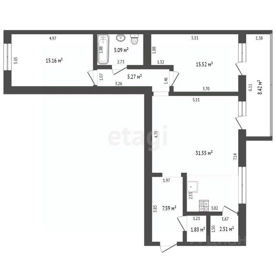 Эта уникальная 2+ или евротрёшка с продуманной планировкой идеально подойдёт как для молодой семьи, так и для тех, кто ценит простор и уют. Просторная кухня-гостиная площадью 31 кв. метра станет центром вашего домашнего очага, а две уютные спальни по 15 кв. метров обеспечат вам необходимую приватность.