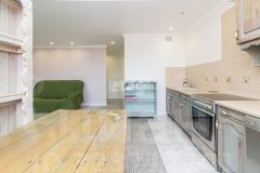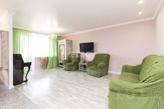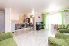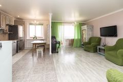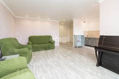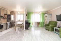 Площадь квартиры 85,4 кв м, кухня гостиная 46 кв, комнаты 15,2 кв и 15,1 кв м. В квартире есть кладовка, где сделаны стеллажи для хранения вещей. Квартира распашного типа, окна выходят на разные стороны, что обеспечивает прекрасную естественную вентиляцию и инсоляцию!