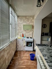 В квартире выполнен косметический ремонт, имеются натяжные потолки. Лоджия застеклена большими пластиковыми окнами и оборудована под кухню. Санузел совмещен. В квартире остается вся мебель и техника (кроме морозильной камеры и телевизора).