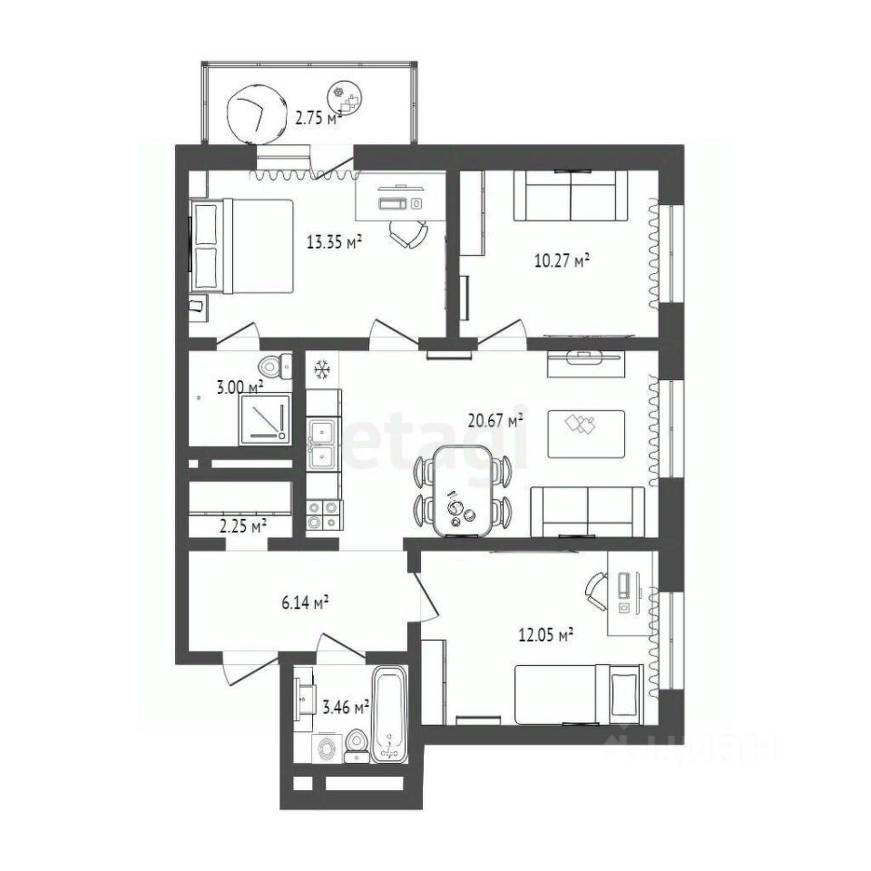 Предлагается просторная квартира площадью 70.6 квадратных метров, располагающаяся на десятом этаже дома. Квартира состоит из трех комнат, + 2 санузла+ гардеробная. Предоставляя возможность комфортного проживания семьи или нескольких жильцов одновременно.