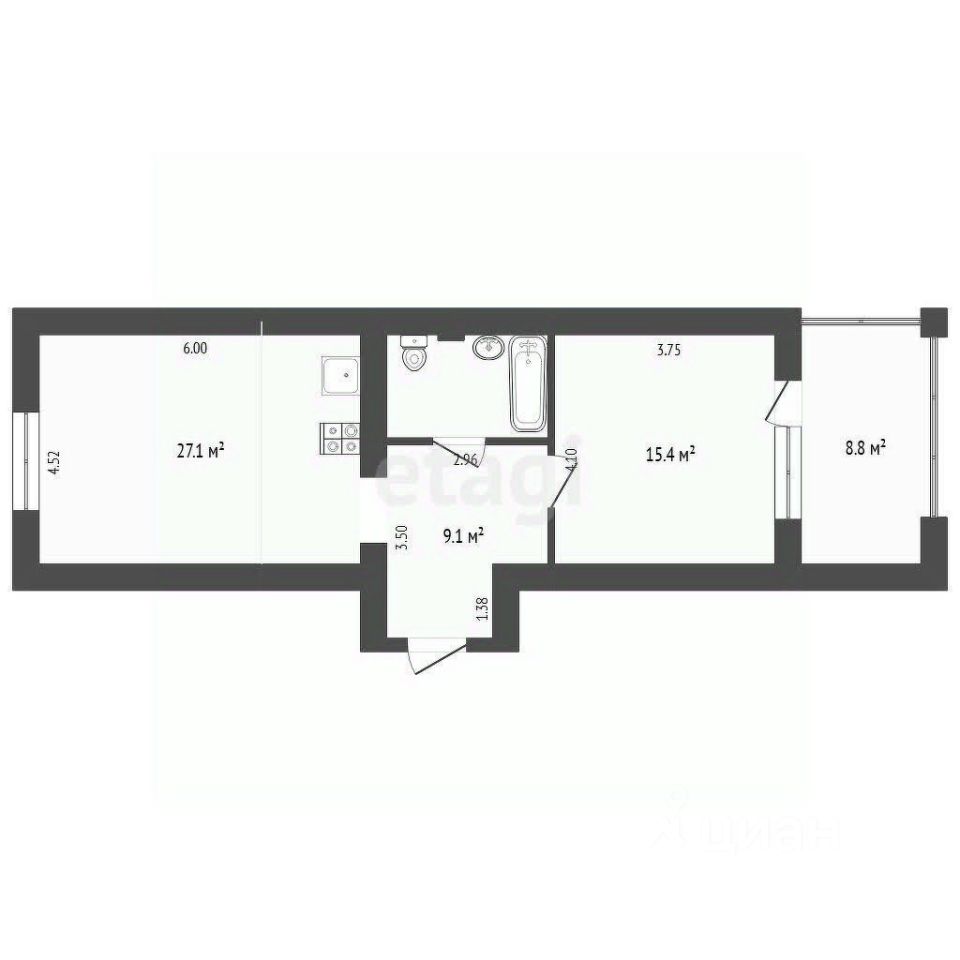 Площадь балкона 8 м2 , в площадь квартиры не включена.