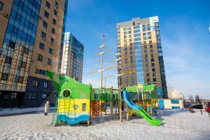 - Во дворе: детские игровые и спортивные площадки, зона воркаута, выход на набережную реки Туры