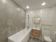 Ремонт выполнен в светлых, нейтральных тонах — стены, пол и потолок создают чистый фон, готовый к воплощению ваших дизайнерских идей. В санузле использована крупноформатная плитка, что придаёт интерьеру современный и элегантный внешний вид, а также визуально увеличивает пространство.