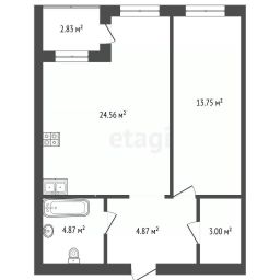 Кухня-гостиная с выходом на теплую лоджию 24,56м2.