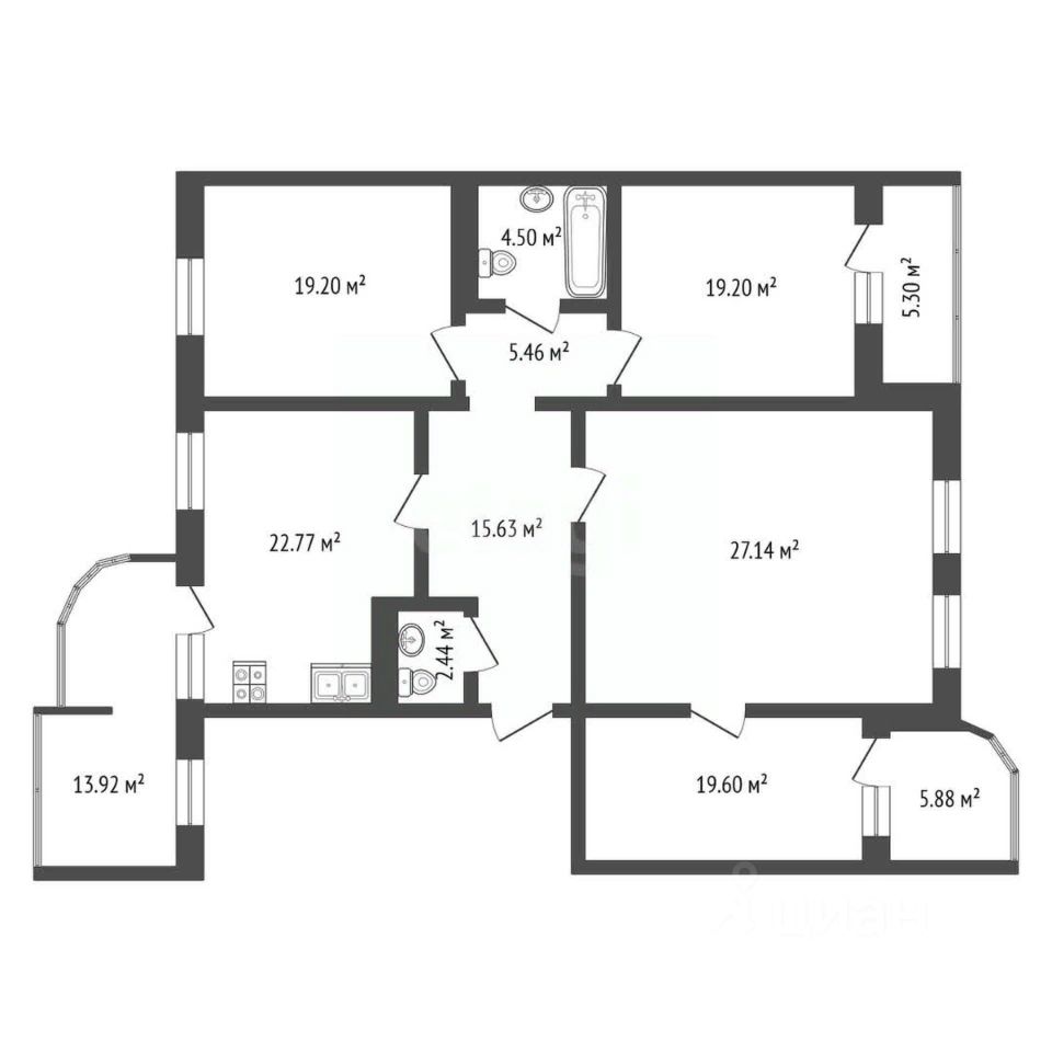Ключевым преимуществом объекта являются две просторные лоджии и балкон, которые не входят в общую площадь, что значительно увеличивает полезное пространство.