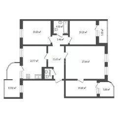 Просторная квартира площадью 145,8 кв.м расположена в историческом центре и предлагает рациональную планировку формата 4+, включающую три изолированные спальни, большую гостиную и кухню-гостиную.
