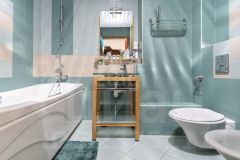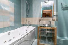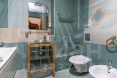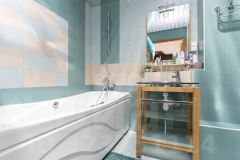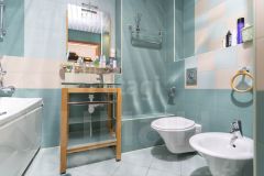 Санузел совмещённый, просторный, с качественной плиткой в приятных однотонных оттенках.