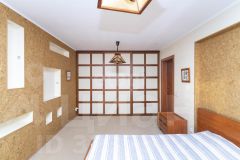 В спальне — пробковое покрытие на стенах, большой встроенный шкаф-купе, кондиционер и двуспальная кровать. Всё продумано до мелочей, чтобы создать ощущение спокойствия и уюта.