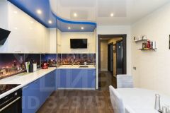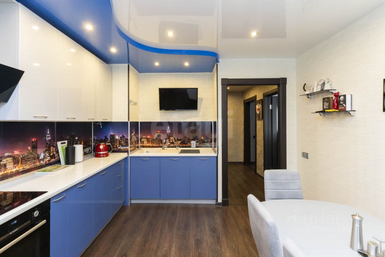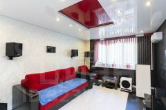 В квартире выполнена отделка в современном стиле: натяжные потолки с точечными светильниками по всей квартире, сенсорные выключатели за исключением кухни и детской, плитка в раздельном санузле, установлена качественная сантехника, на полу линолеум, в зале spc плитка, на стенах обои, балконы остеклены, один балкон с отделкой и теплыми полами, есть кондиционер.