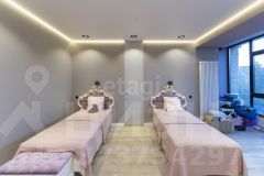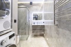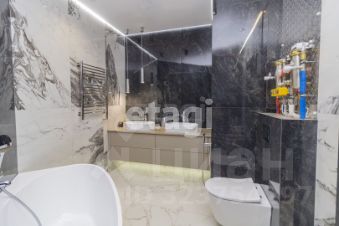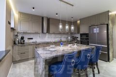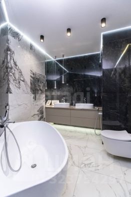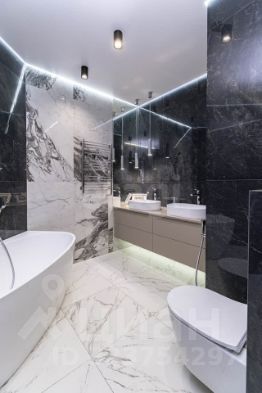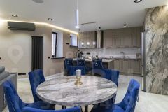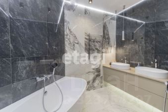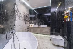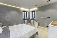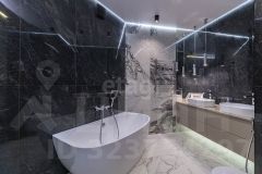 Стены в квартире украшены декоративной штукатуркой. В сан узлах керамогранит под мрамор, премиальная сантехника (унитазы - Япония, ванна - Италия, смесители - Германия).