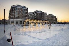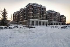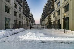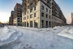 Каждый подъезд — это воплощение современного стиля: сквозные входные группы с прозрачными элементами, которые создают ощущение простора и света. Интерьеры холлов оформлены в стиле современного модернизма, где натуральные "пепельные" цвета и плавные линии создают атмосферу домашнего уюта.