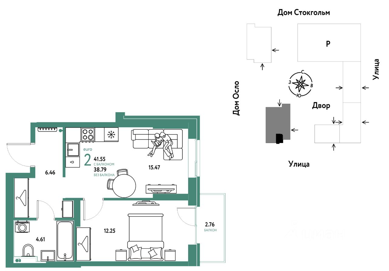 Продается 2комнатная квартира на 7 этаже от застройщика Страна Девелопмент. Площадь квартиры 41,55 кв. м.