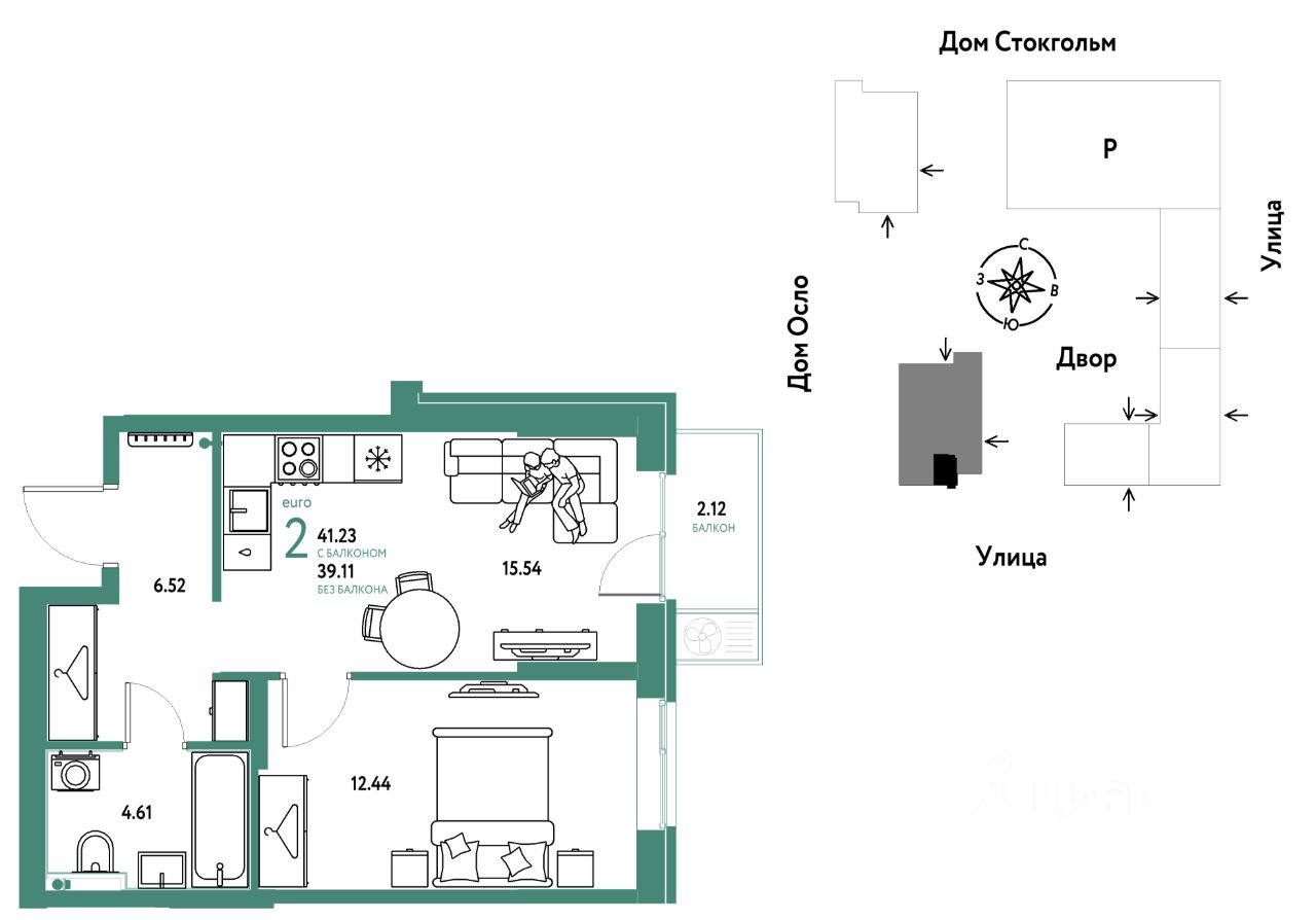 Продается 2комнатная квартира на 9 этаже от застройщика Страна Девелопмент. Площадь квартиры 41,23 кв. м.