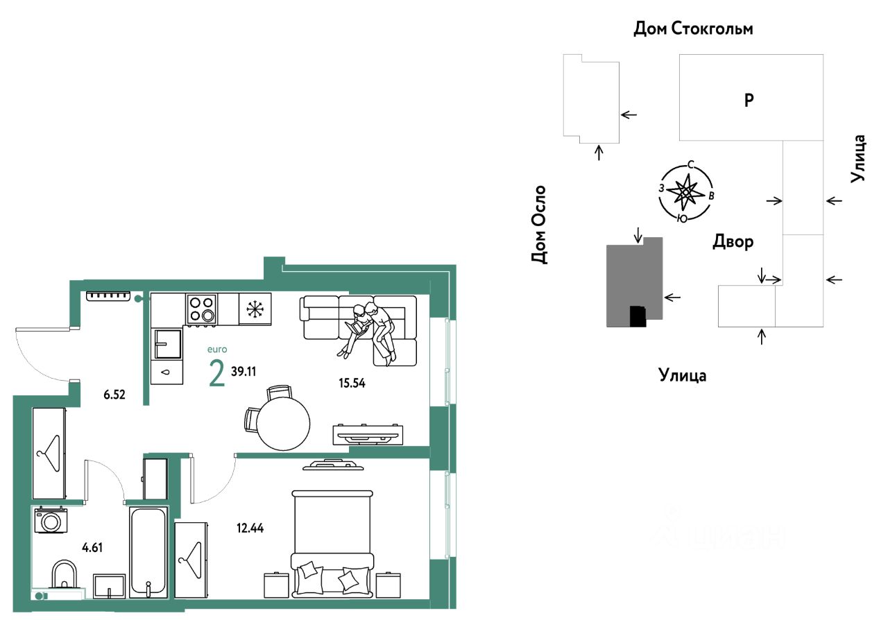 Продается 2комнатная квартира на 15 этаже от застройщика Страна Девелопмент. Площадь квартиры 39,11 кв. м.
