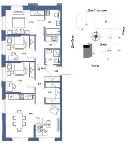Продается 4комнатная квартира на 23 этаже от застройщика Страна Девелопмент. Площадь квартиры 90,99 кв. м.