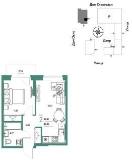 Продается 2комнатная квартира на 3 этаже от застройщика Страна Девелопмент. Площадь квартиры 38,81 кв. м.
