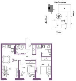 Продается 3комнатная квартира на 4 этаже от застройщика Страна Девелопмент. Площадь квартиры 56,8 кв. м.