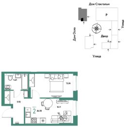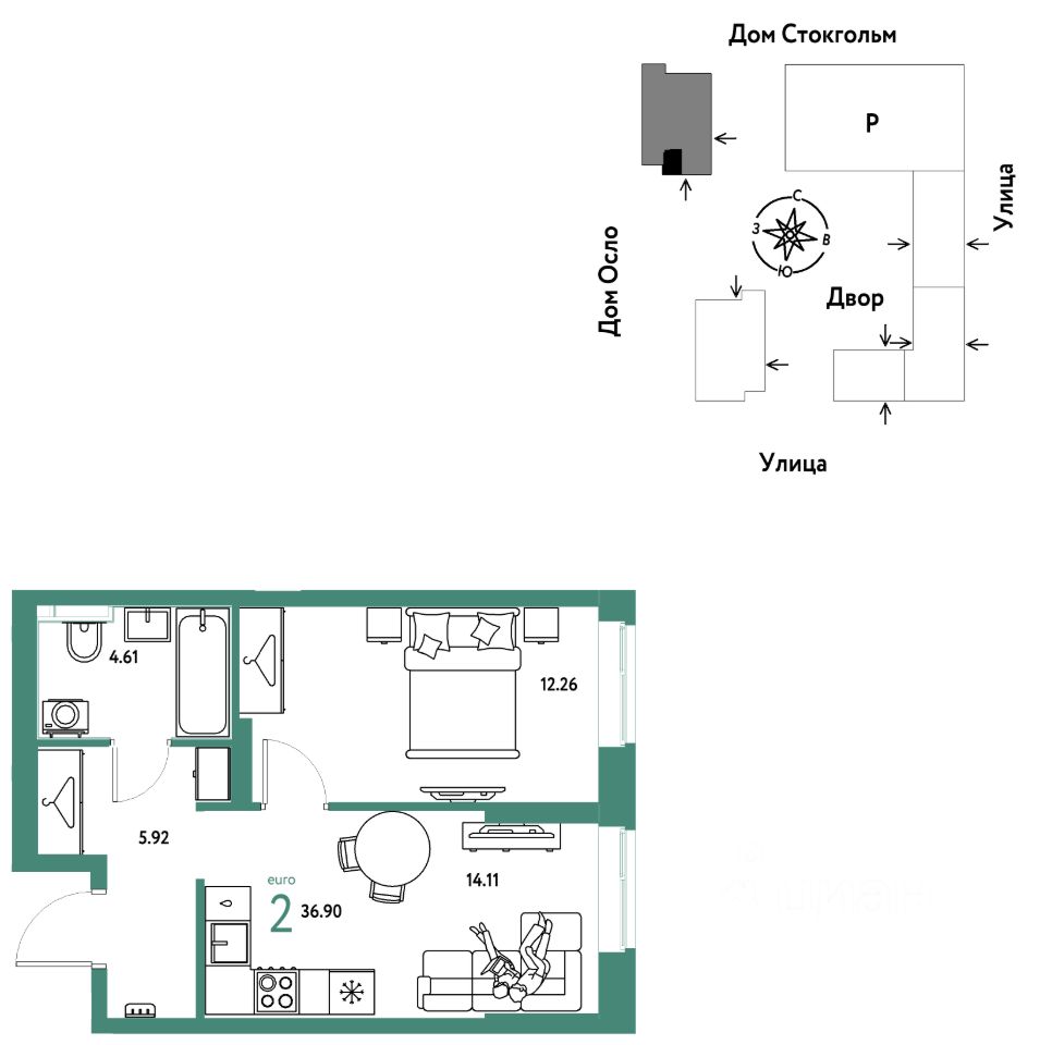 Продается 2комнатная квартира на 6 этаже от застройщика Страна Девелопмент. Площадь квартиры 36,9 кв. м.