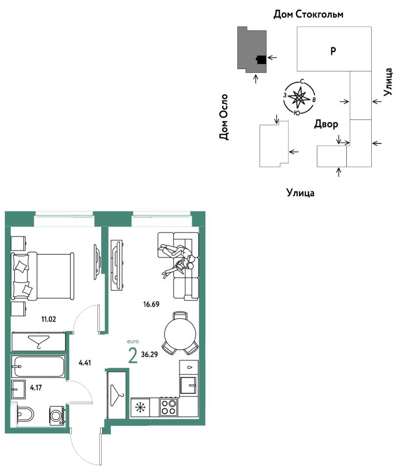 Продается 2комнатная квартира на 10 этаже от застройщика Страна Девелопмент. Площадь квартиры 36,29 кв. м.