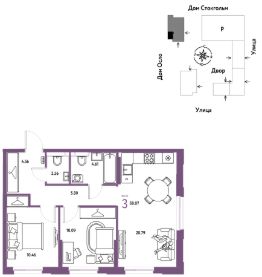Продается 3комнатная квартира на 10 этаже от застройщика Страна Девелопмент. Площадь квартиры 58,07 кв. м.
