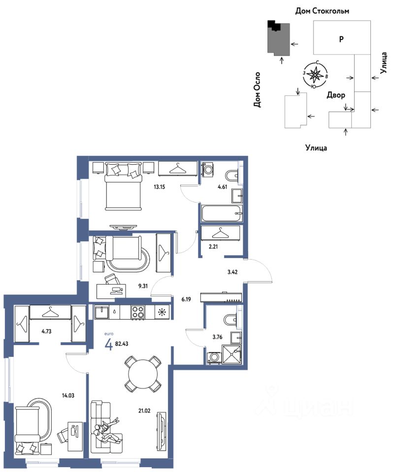 Продается 4комнатная квартира на 11 этаже от застройщика Страна Девелопмент. Площадь квартиры 82,43 кв. м.