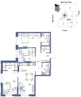 Продается 4комнатная квартира на 16 этаже от застройщика Страна Девелопмент. Площадь квартиры 82,43 кв. м.