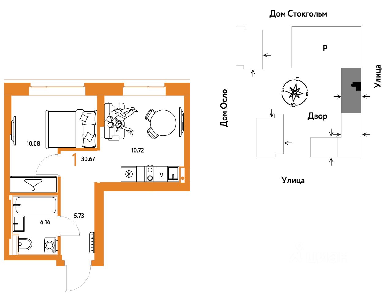 Продается 1комнатная квартира на 7 этаже от застройщика Страна Девелопмент. Площадь квартиры 30,67 кв. м.