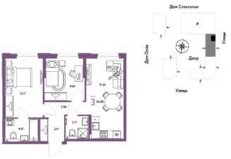 Продается 3комнатная квартира на 8 этаже от застройщика Страна Девелопмент. Площадь квартиры 54,8 кв. м.