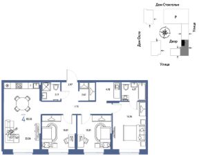 Продается 4комнатная квартира на 2 этаже от застройщика Страна Девелопмент. Площадь квартиры 82,38 кв. м.