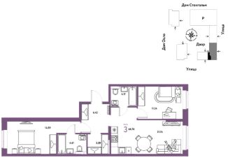 Продается 3комнатная квартира на 5 этаже от застройщика Страна Девелопмент. Площадь квартиры 66,76 кв. м.