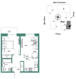 Продается 2комнатная квартира на 6 этаже от застройщика Страна Девелопмент. Площадь квартиры 43,13 кв. м.