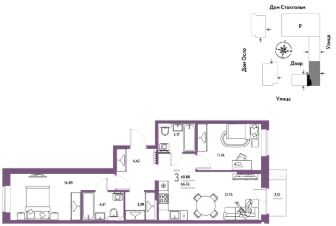 Продается 3комнатная квартира на 9 этаже от застройщика Страна Девелопмент. Площадь квартиры 68,88 кв. м.