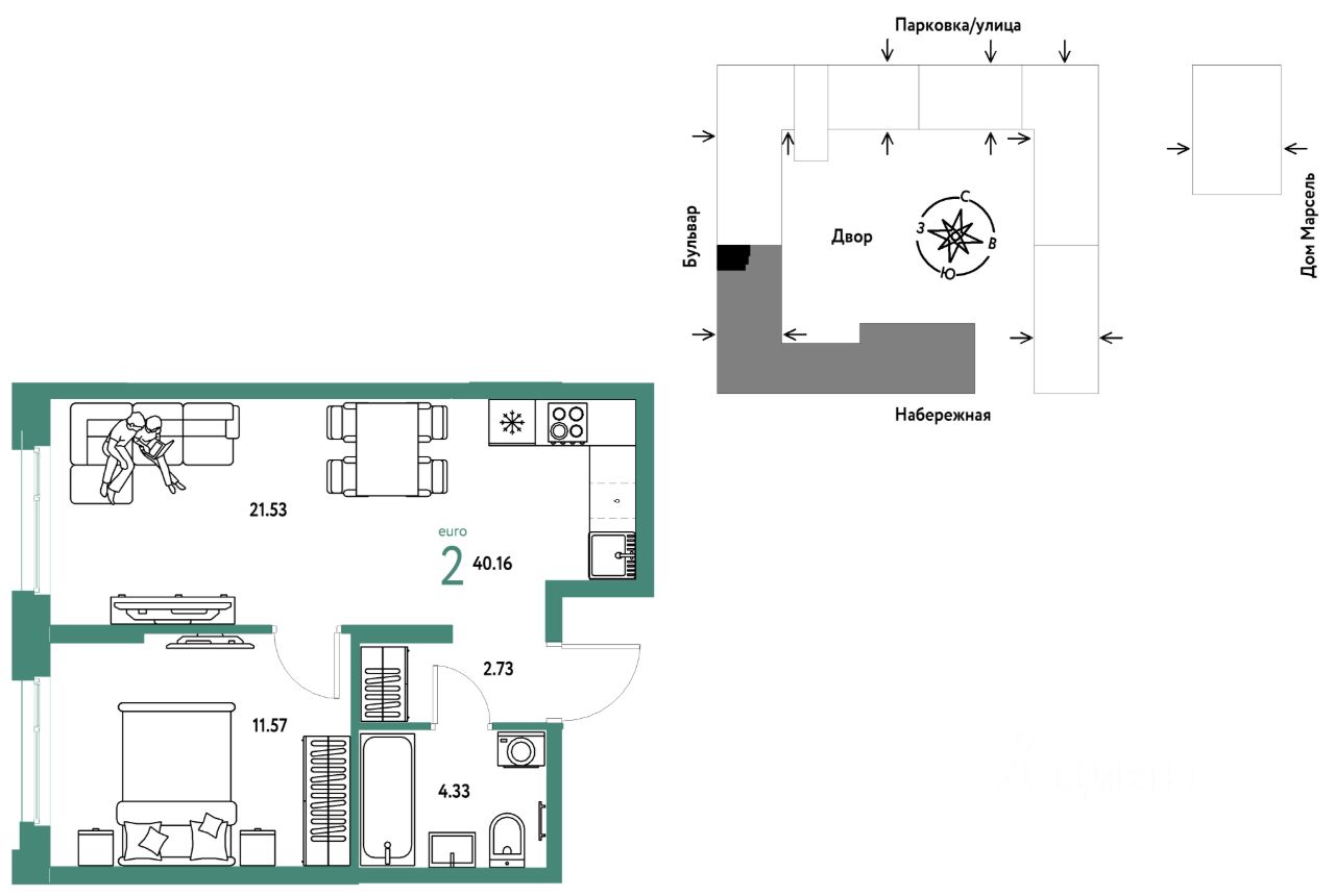 Продается 2комнатная квартира на 4 этаже от застройщика Страна Девелопмент. Площадь квартиры 40,16 кв. м. Стоимость указана без учета акций.