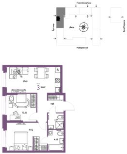 Продается 3комнатная квартира на 2 этаже от застройщика Страна Девелопмент. Площадь квартиры 56,07 кв. м. Стоимость указана без учета акций.